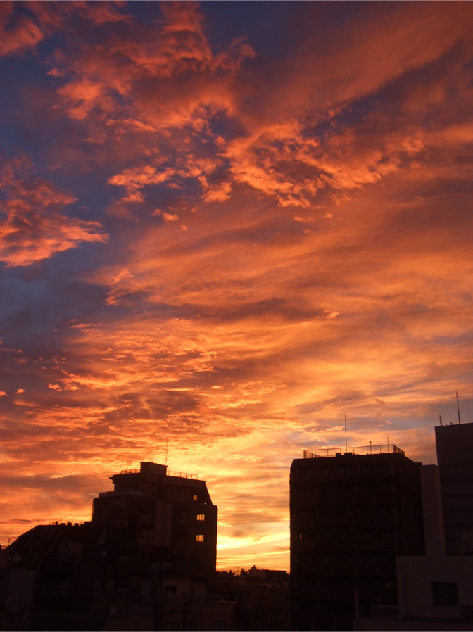 朝コーヒーを満喫した後で帰路に着くと、ものすごいきれいな朝焼けが!!