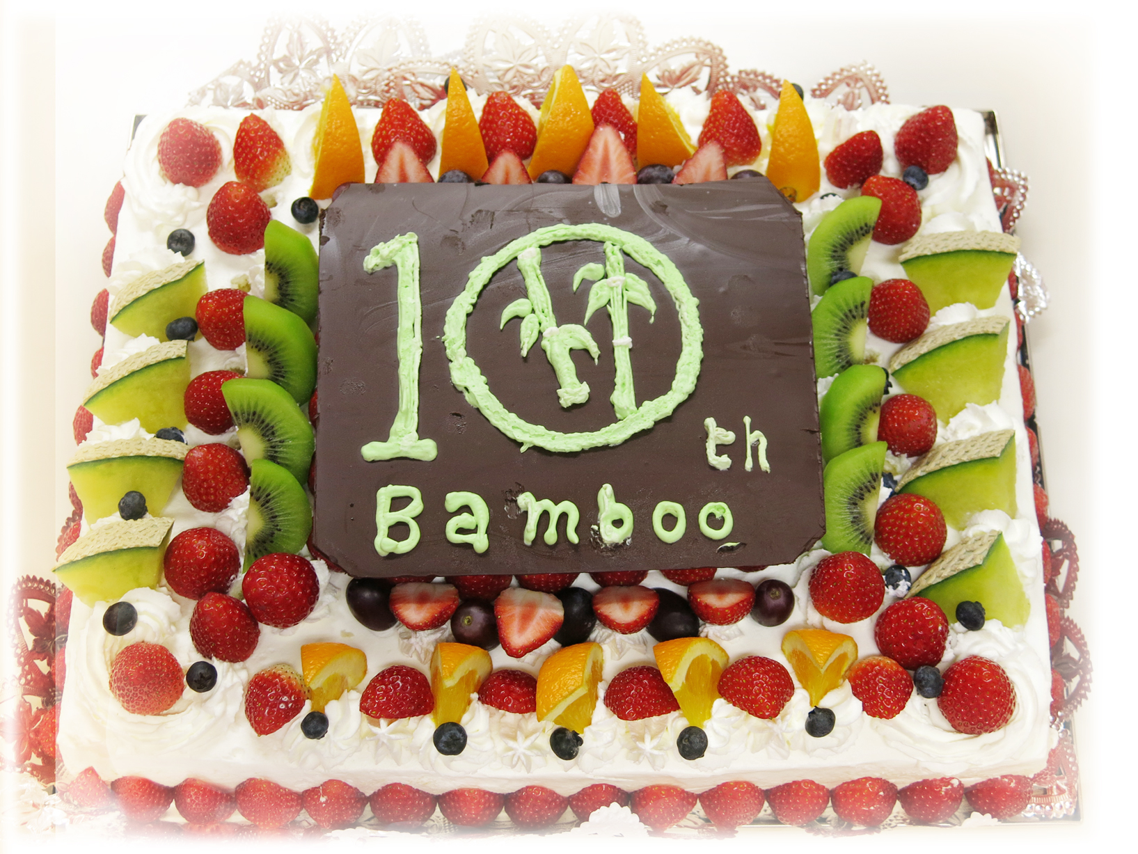 今回は特別に『ロゴ入りの大きいケーキがいい!』ってことで国分寺のファンフルさんに作っていただきました。