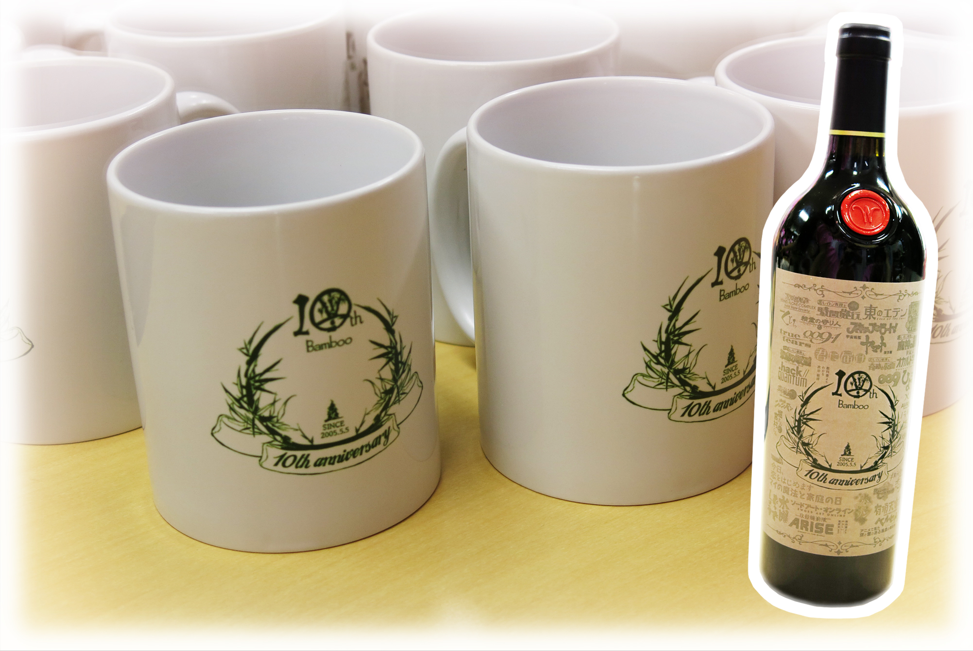 そして、竹田さんには内緒で社員一同より花&オリジナルロゴ入り来客用マグカップ&Bambooの今までの作品をラベルにしたワインをサプライズでプレゼント~~゜+.(ノ*・ω・)ノ*.