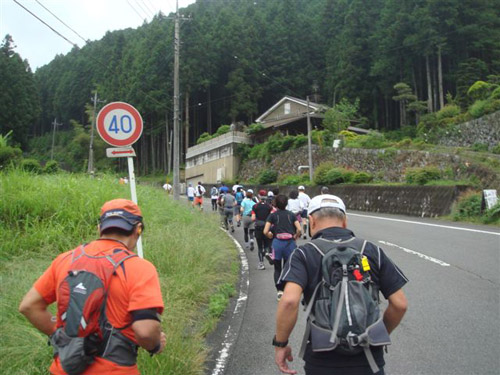 ゆるい上りの途中で、大会スタッフが立っており、