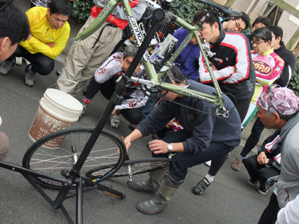 技術士の方の講習で、ロードバイクの洗車の仕方を目の前で披露してくださいました。