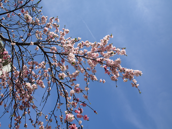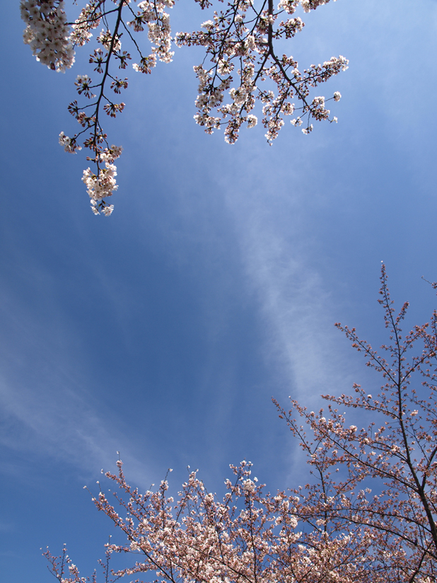 』って実感してみたり。ふと、カメラを上に向けたら、空が青くて、桜が綺麗でふわ〜〜〜って....